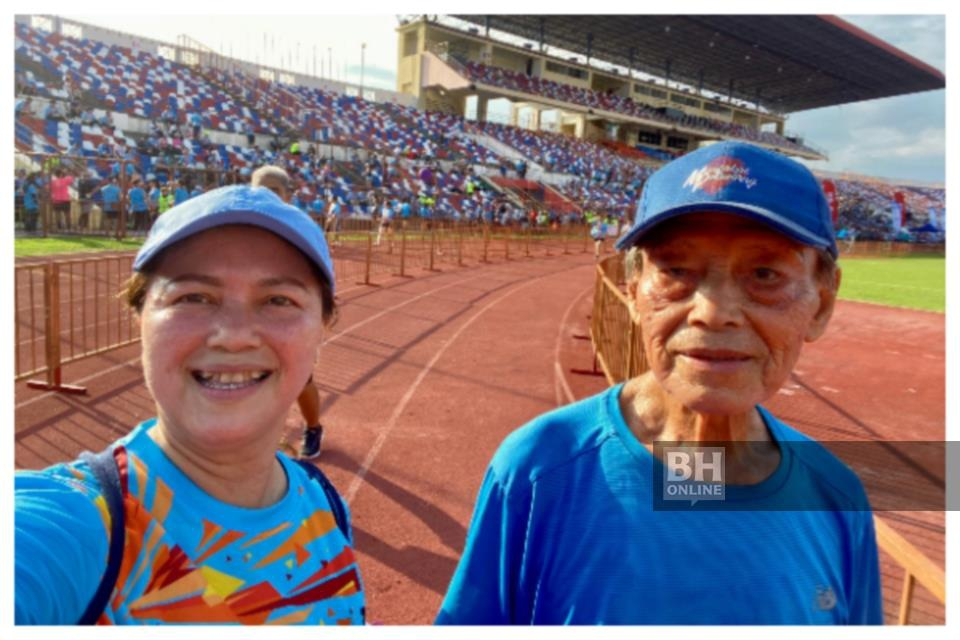 ‘Saya bangga berlari maraton 10 kilometer pada usia 92 tahun’ Buatin bersama anaknya, Doris pada…